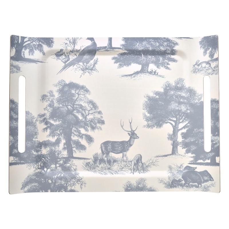 Une collection grandiose qui se dessine comme une toile de Jouy où faisandeaux, marcassins, faons et levrauts se prélassent au sein d'une végétation luxuriante. Une pièce digne des plus grands châteaux ! Alliant l'utile et la déco tout en élégance grâce aux poignées qui permettent de les transporter. Réalisé en bois 100% bouleau. Le Jacquard Français.