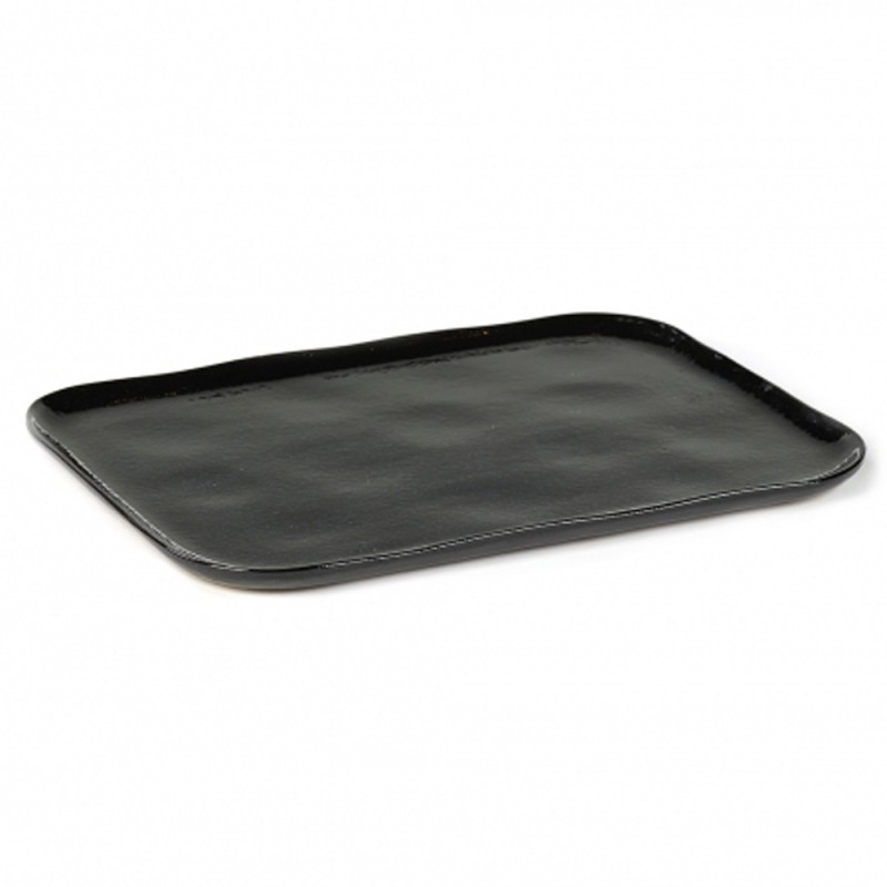Assiette plate rectangulaire en grès émaillé N°1 XL Noir d'encre, la nouvelle table Merci, Serax