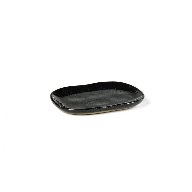 Assiette plate rectangulaire en grès émaillé N°4 S Noir d'encre, Merci, Serax