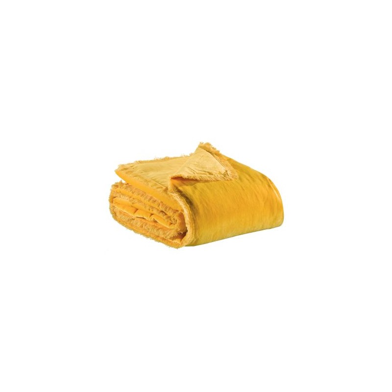 Edredon bout de lit uni velours de coton/coton Fara Curry 85x200, Vivaraise