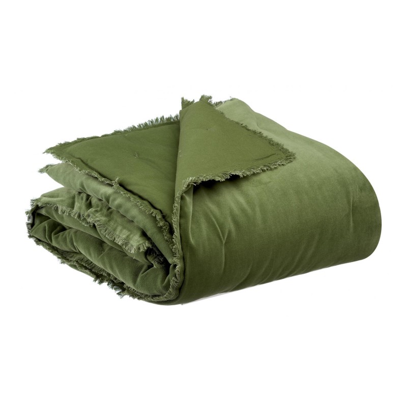 Edredon bout de lit uni velours de coton/coton Fara Eucalyptus 85x200, Vivaraise