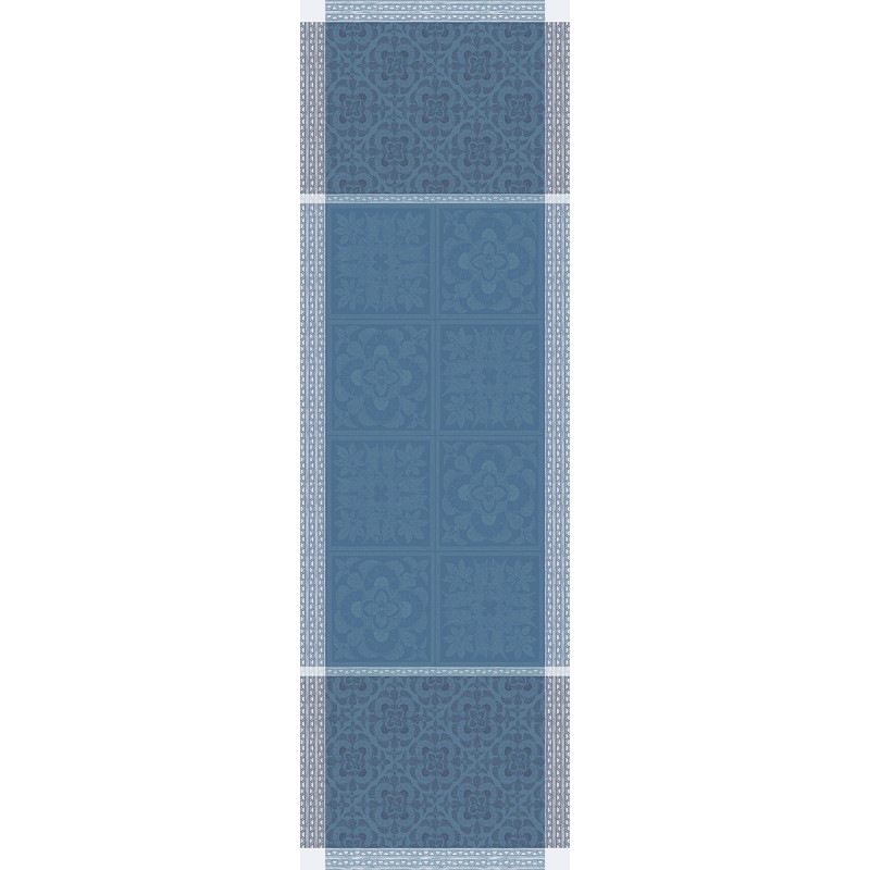 Chemin de table jacquard pur lin antitache Harmonie Bleu, Garnier-Thiébaut