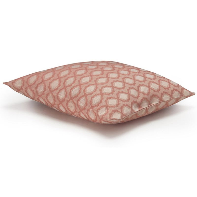 Housses de coussin Arrière-pays Pêche. La collection outdoor Arrière-pays, inspirée des marchés ensoleillés de Provence, nous offre un tissage délicat ou s'entremêlent, fruits de la région, motifs géométriques et ornementaux. Housse de coussin élégante et pratique, réversible, traitée antitache. Deux faces identiques. Le Jacquard Français.