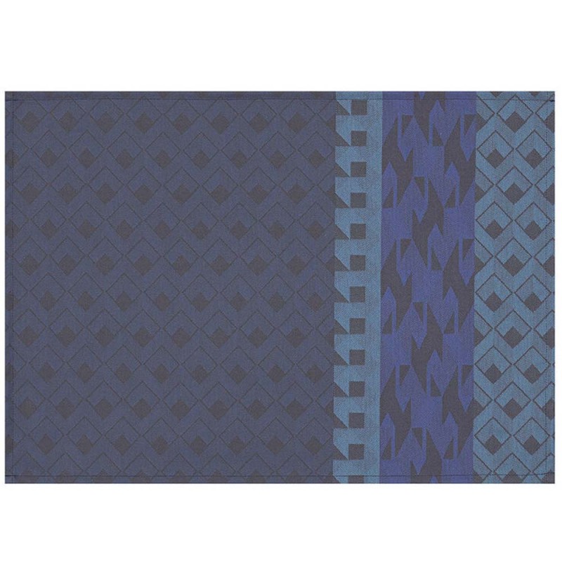 Le modèle Caractère Cosmos, un style à la fois moderne et authentique, aux motifs graphiques rétros dans un camaïeu de bleus profonds. Set de table design en coton enduit haut de gamme, traité anti-taches, anti-glisse. Vendus par 4. Fabriqué en France. Le Jacquard Français.