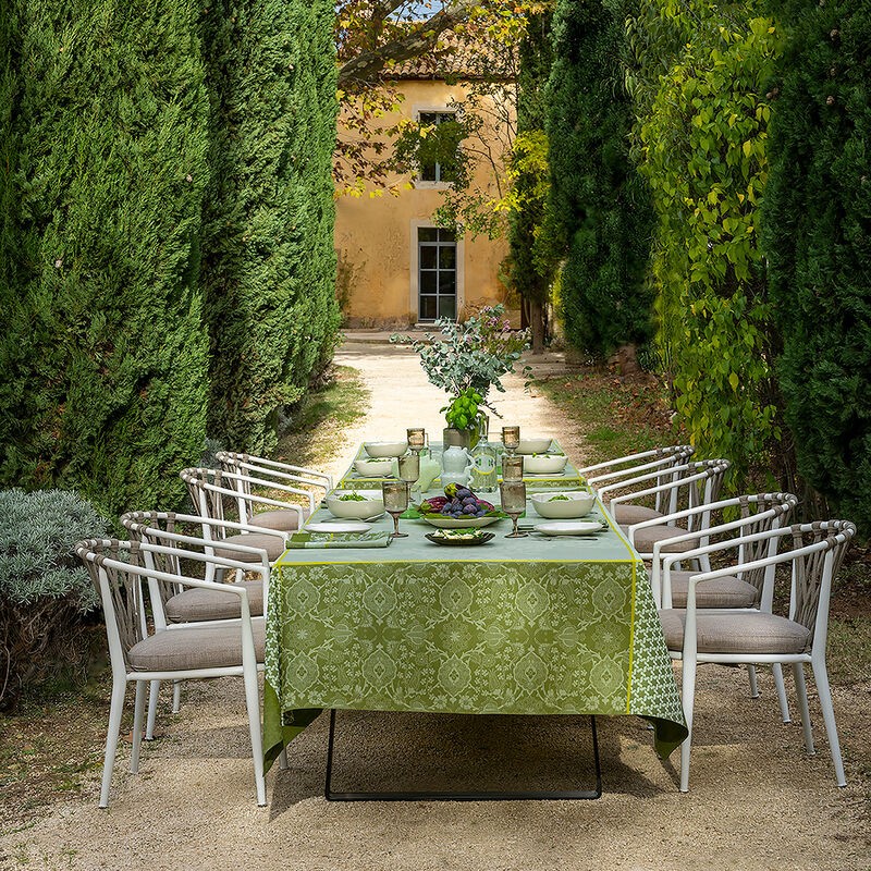 Les produits enduits Le Jacquard Français sont fabriqués en 100% coton et recouverts de deux couches d'acrylique. Ce film protecteur, les rend antitaches et déperlants. Les articles de linge de table enduits se nettoient avec une éponge. Pour conserver l'efficacité optimale du traitement, nous vous conseillons de repasser occasionnellement les produits afin de réactiver la résine grâce à la chaleur.