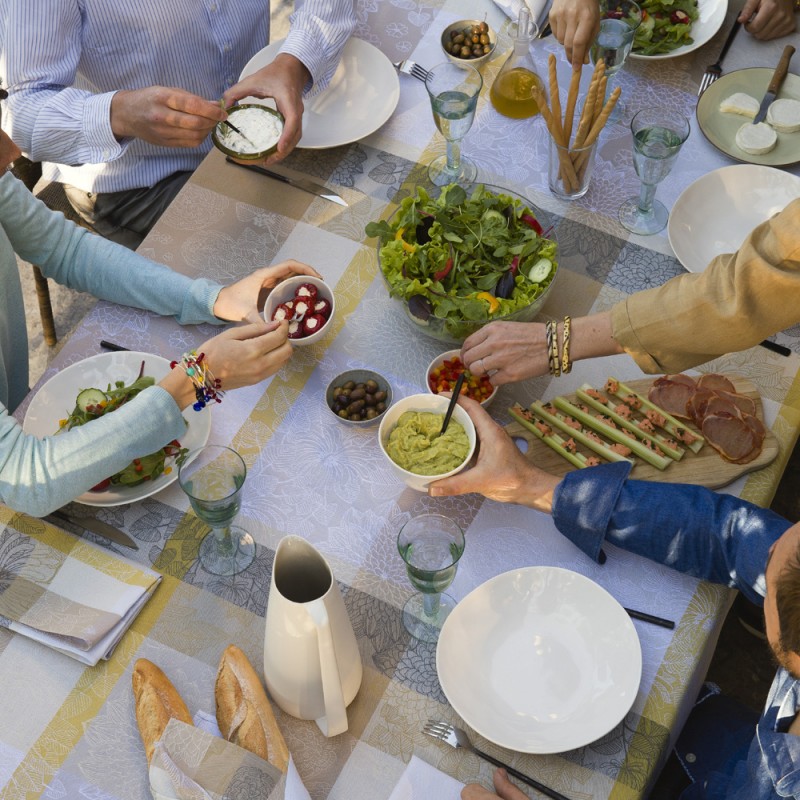 . Confection soignée, les nappes sont confectionnées dans les ateliers Le Jacquard Français, en France.