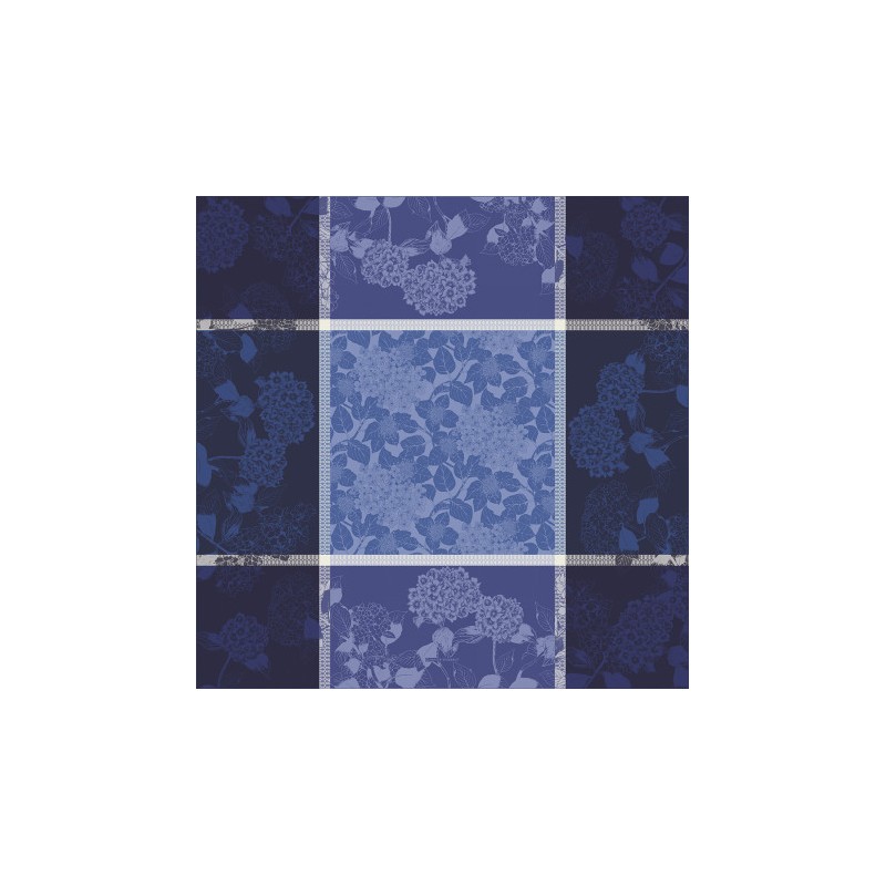 Petit carré déco anti tache coton Bio Hortensias Bleu, Garnier-Thiébaut