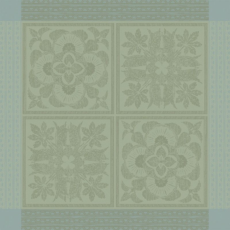 Serviettes de table Harmonie Opaline. Ces serviettes de table au motif végétal délicat et féminin, travaillées dans une belle harmonie de verts, sur un jacquard pur lin haut de gamme, sont assorties au linge de table Harmonie Opaline des collections Garnier-Thiébaut. Finition soignée. Vendu par 4. Tissé et confectionné en France.