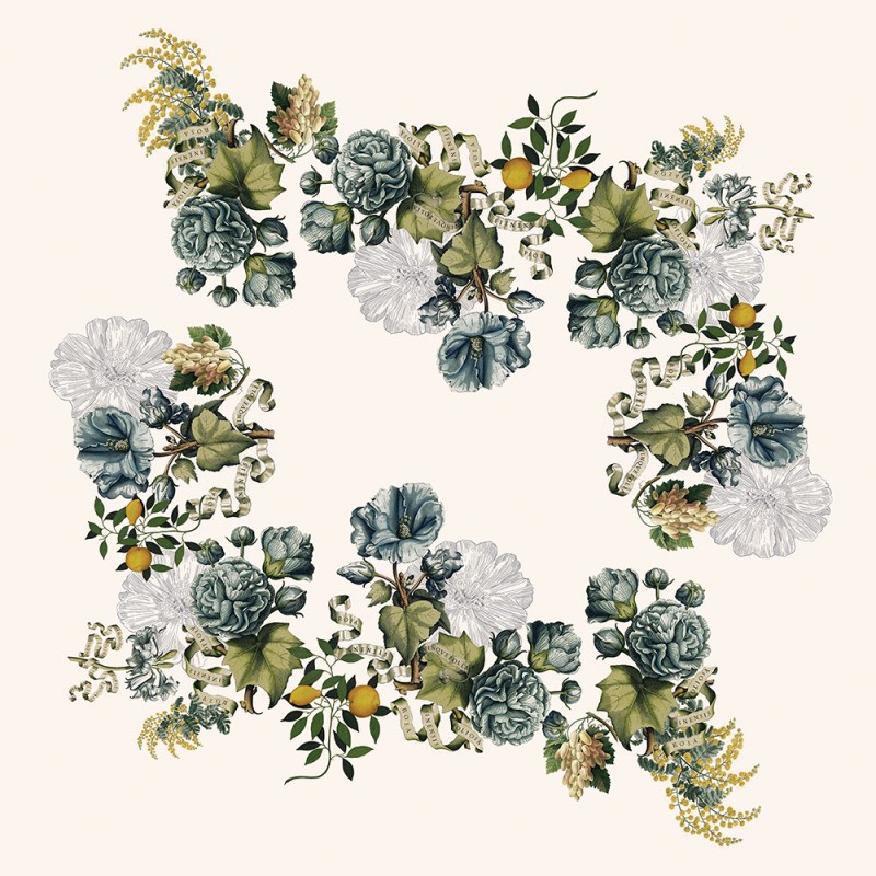 Petit carré déco pur lin imprimé Giardino Naturel, Garnier-Thiébaut