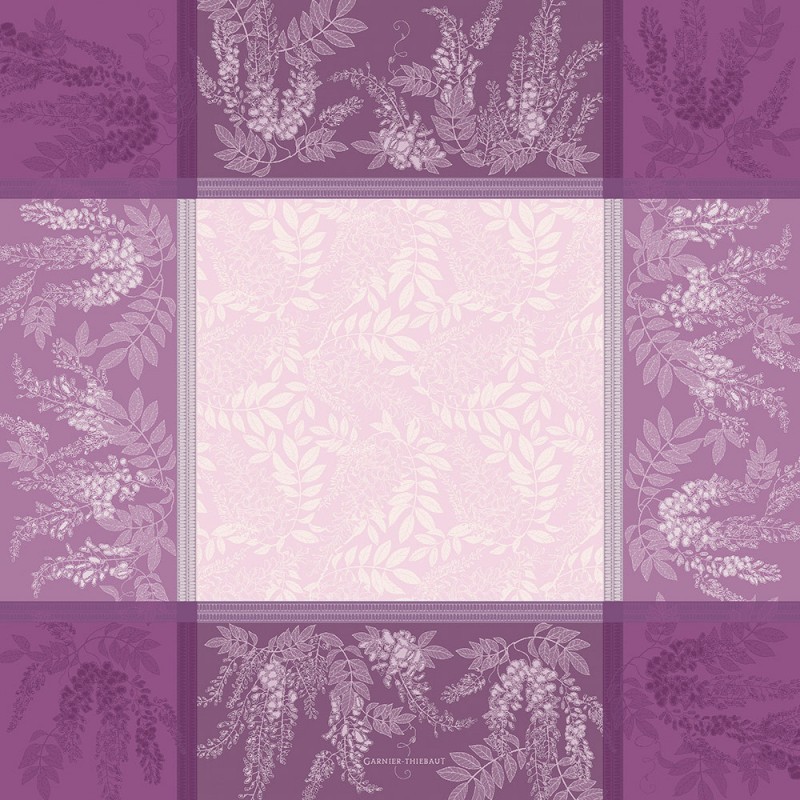 Petit carré déco pur coton antitache Glycines Parme, Garnier-Thiébaut