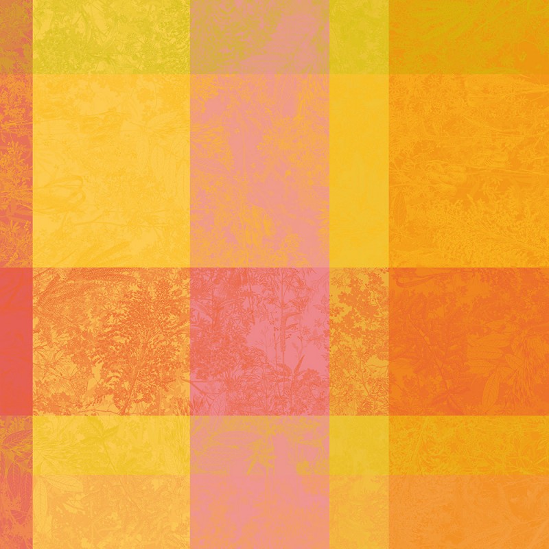 . Serviettes assorties Serviettes Mille Esprit jardin Chatoyant ou serviettes unies Confettis coloris abricot, absinthe, aurore, capucine, corail (coloris identiques, même fil, serviettes en satin de coton) s'associent parfaitement à cette nappe et permettent de créer des coordonnés variés... En vente dans la rubrique serviettes de table.