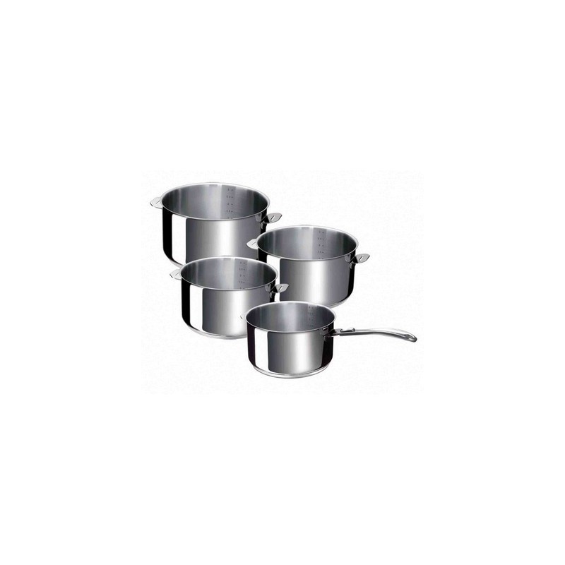 Série de 4 casseroles inox Evolution, Beka. Une ligne de qualité facile à l'emploi et exigeant peu de place. En acier inoxydable de haute qualité avec fond épais et poignée amovible en fonte inox avec indicateur de sécurité. Possibilité d'adapter un couvercle. Convient à toutes les sources de chaleur y compris induction. Marque Beka