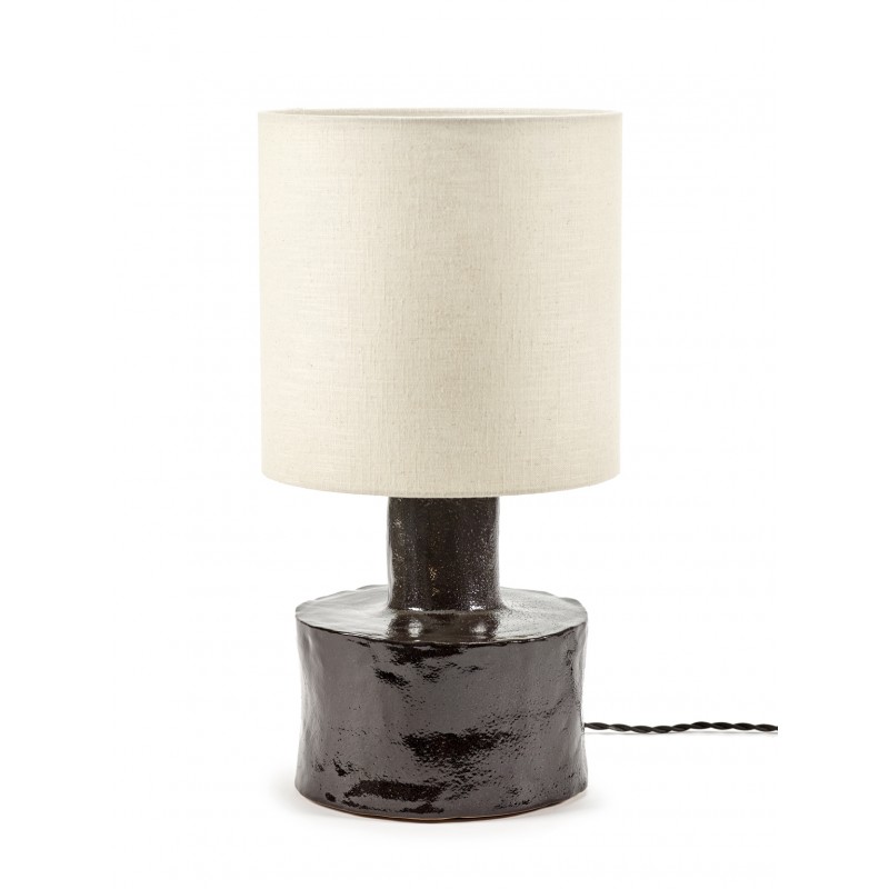 La lampe à poser Catherine de l'artiste designer Marie Michielssen pour Serax, est composée d'un pied en céramique noir et d'un abat-jour en lin. Cette lampe d'ambiance diffuse une lumière douce et chaleureuse. L'alliance de matériaux naturels, les lignes épurées, et le design minimaliste en font un objet de décoration qui s'intègre dans tous les styles d'intérieur.