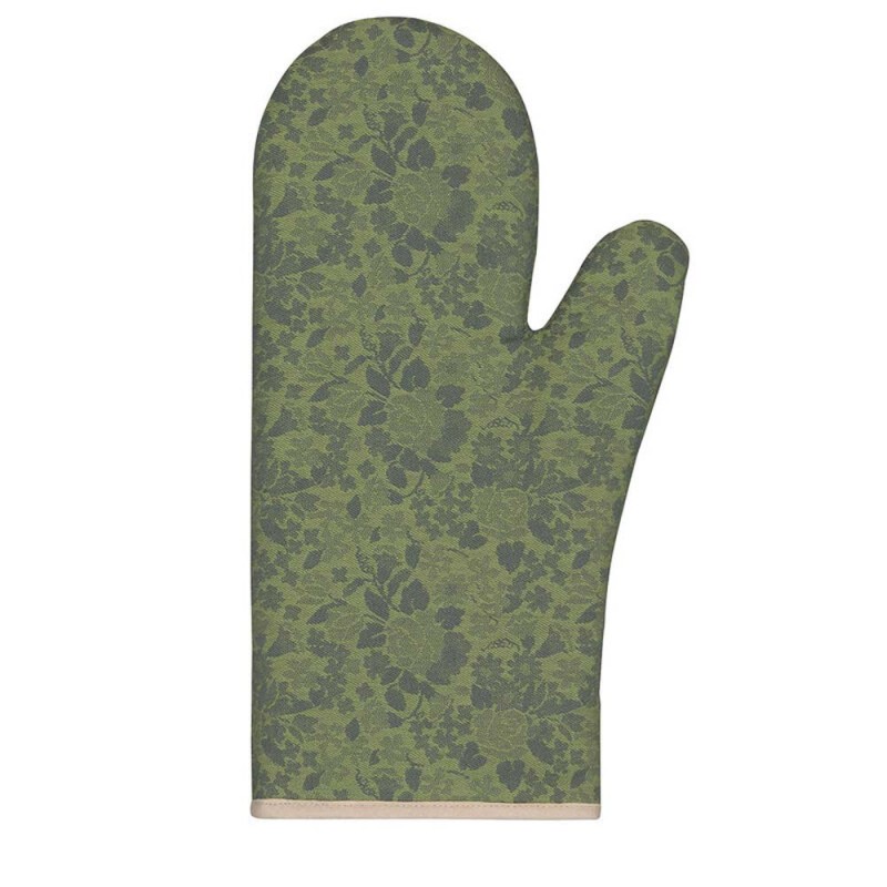Style et sécurité sont garantis avec ce gant de four à l'esprit cosy et naturel grâce aux motifs liberty délicatement tissé, dans un coloris vert Sapin. Réalisé en 100% coton, fabriqué en France. Le Jacquard Français.