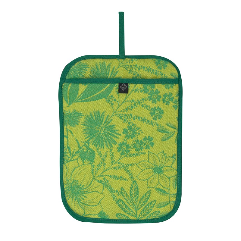 Une collection conviviale, romantique et champêtre, pleine de vitalité et de savoir-faire dans un camaïeu de verts avec cette grande manique en 100% coton au savoir-faire français, qui sera votre compagnon indispensable en cuisine. Fabriqué en France. Le Jacquard Français.