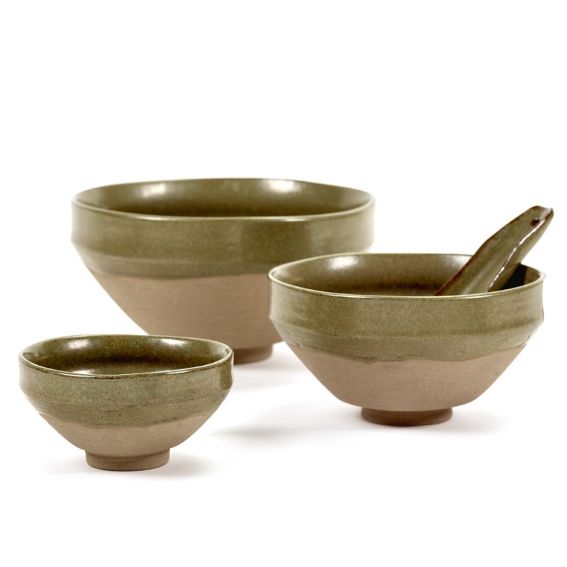 Ensemble de 3 Bols N°3 et 3 cuillères en grès émaillé Green, Meal x3 Merci, pour Serax