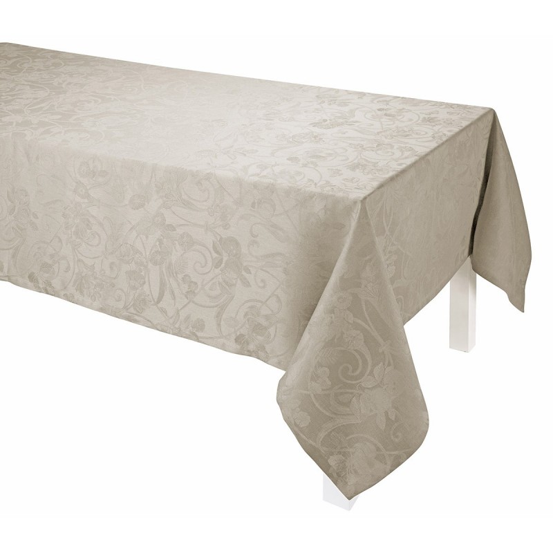 Tivoli, un modèle assurément chic, qui traverse le temps et s'impose comme un intemporel dans un coloris neutre Blé ! Des motifs voluptueux d'entrelacs, volutes et végétaux, parent ce superbe uni damassé travaillé en pur lin. Tissu nappe vendu au mètre. Tissé en France. Le Jacquard Français.