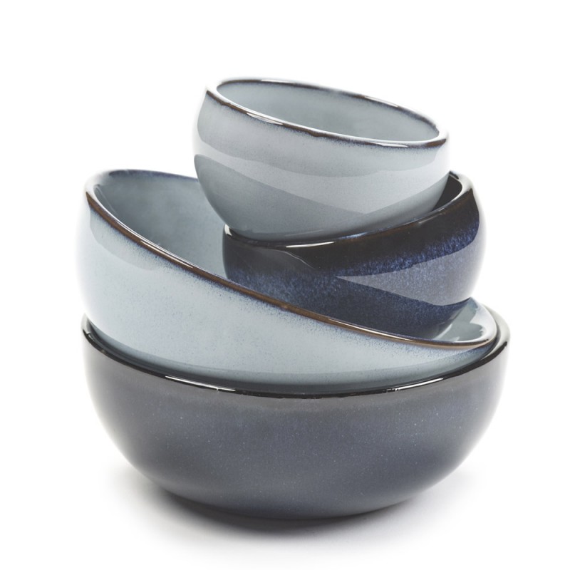 Ce service apéro est composé de 2 bols céramiques : 2 bleu indigo et 2 bols bleu glacier, de taille différentes.