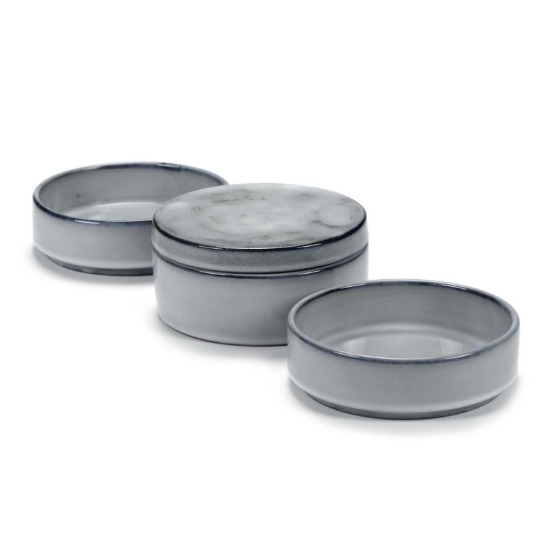 Service Apéro 3 coupelles et couvercle céramique empilables D14cm Pure Bleu glacier, Pascale Naessens