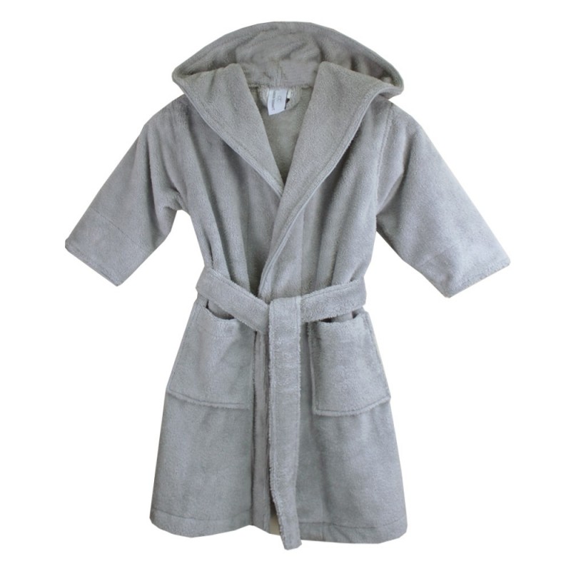 Peignoir Teddy Perle. Enfants et ados vont adorer ce joli peignoir de bain gris perle à capuche, à la fois élégant, doux pour la peau, très absorbant, et confortable. En éponge de qualité 300g/m². Passepoil façon cordelette très résistant le long de la capuche, de l'ouverture centrale et au bout des manches. 2 poches. Ceinture fixée dans le dos. Garnier-Thiébaut