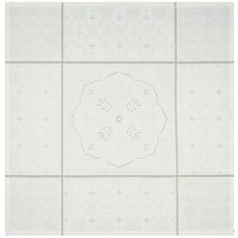 Armoiries est un hommage aux arts décoratifs et au savoir-faire exceptionnel du Jacquard Français. Arabesques, feuilles d'acanthes et fleurs de lys, se rassemblent autour d'une rosace de château. Ces petits carrés déco sont parfaits pour se marier avec délicatesse à tous les styles de vaisselle grâce à leur coloris Lys intemporel et motifs discrets. Réalisés en pur lin, longues fibres, finition coins onglets. Fabriqué en France.