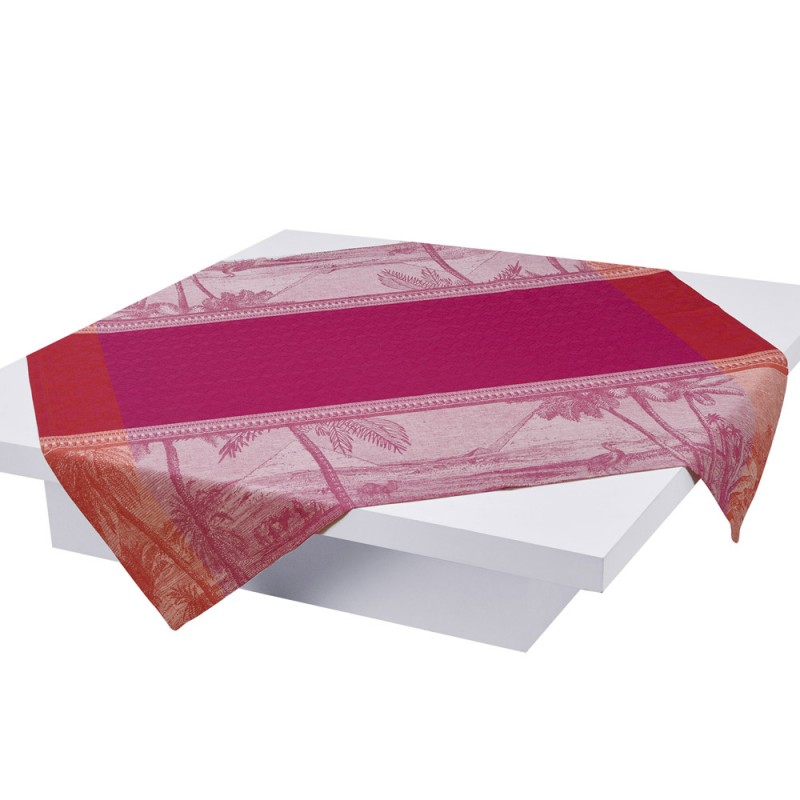 . Une collection qui se décline en nappe carrée, rectangulaire, serviettes, chemin de table, tête à tête, vis à vis, sets de table, coussins déco et plateaux de service... en vente sur Comptoir du Sud.