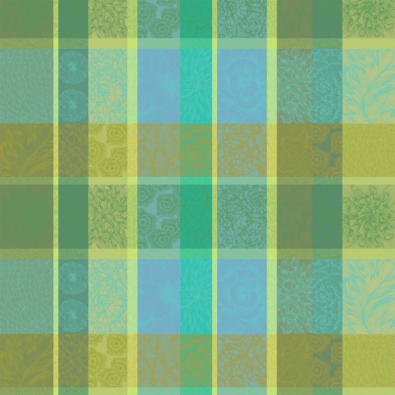 . Serviettes assorties serviettes de table Mille Pétales Chlorophylle ou serviettes unies Confettis coloris Absinthe, Mousse, Turquoise (coloris identiques, même fils) s'associent parfaitement à cette nappe et permettent de créer des coordonnés variés... En vente dans la rubrique serviettes de table.