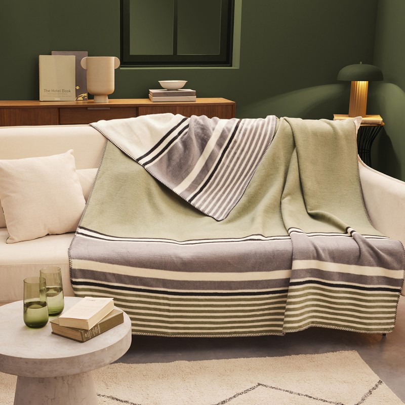 Plaid coton/aures fibres Iona Vert 150x200cm, Garnier-Thiébaut