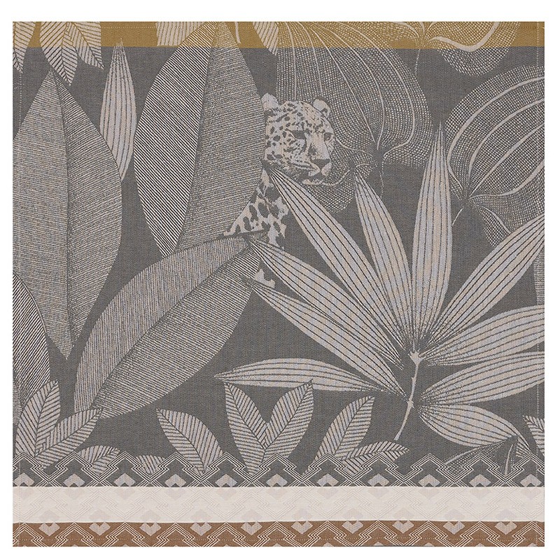 Nature sauvage Eléphant répond à une quête d'essentiel et de nature grâce à sa flore généreuse et son motif géométrique tribal. Une collection qui pourra convenir aussi bien pour vos repas quotidiens en famille que pour les repas de fêtes! Serviettes de table en pur coton peigné, longues fibres. Tissé en France. Le Jacquard Français. Vendu par 4.