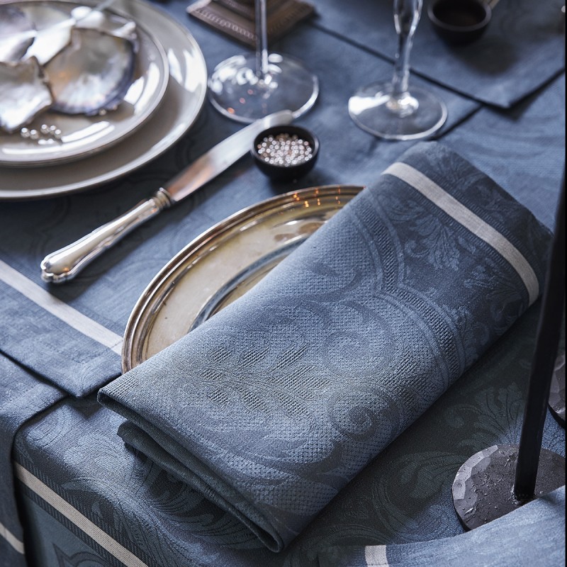 Serviettes de table pur lin Armoiries Céruléen, Le Jacquard Français (par 4)