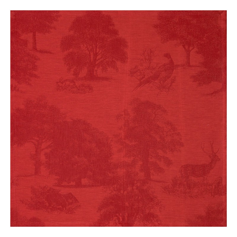 Une collection grandiose qui se dessine en rouge carmin comme une toile de Jouy où faisandeaux, marcassins, faons et levrauts se prélassent au sein d'une végétation luxuriante. Ces splendides serviettes de table sont assorties au linge de table Souveraine Carmin, 100% pur lin longues fibres. Fabriqué en France. Vendu par 4. Le Jacquard Français
