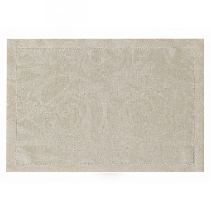Des tons neutres, des motifs voluptueux d'entrelacs, volutes et végétaux, parent ce superbe uni damassé en pur lin, purement chic et intemporel. Finitions raffinées. Sets de table vendus par 4. tissés en France. Le Jacquard Français.