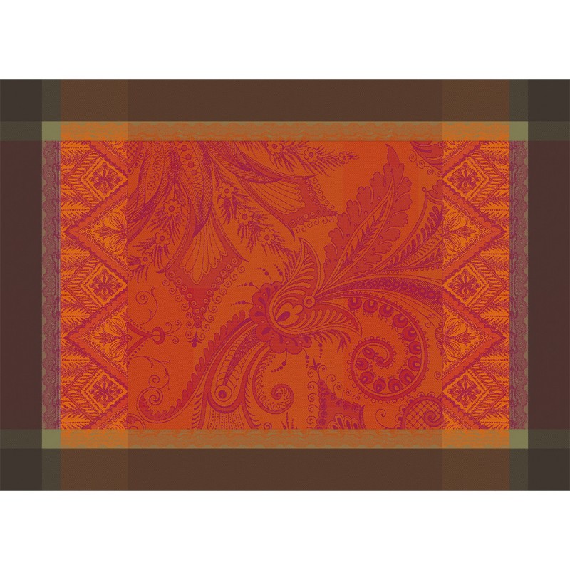 Prestige et élégance avec ces sets de table aux motifs raffinés mis en valeur par une alliance de tons flamboyants. Traités antitache durable Green Sweet, ils sont travaillés sur un 100% coton 245 g/m², au tissage serré, avec une finition soignée coins capuchons. Vendus par 4. Fabriqué en France. Garnier-Thiébaut