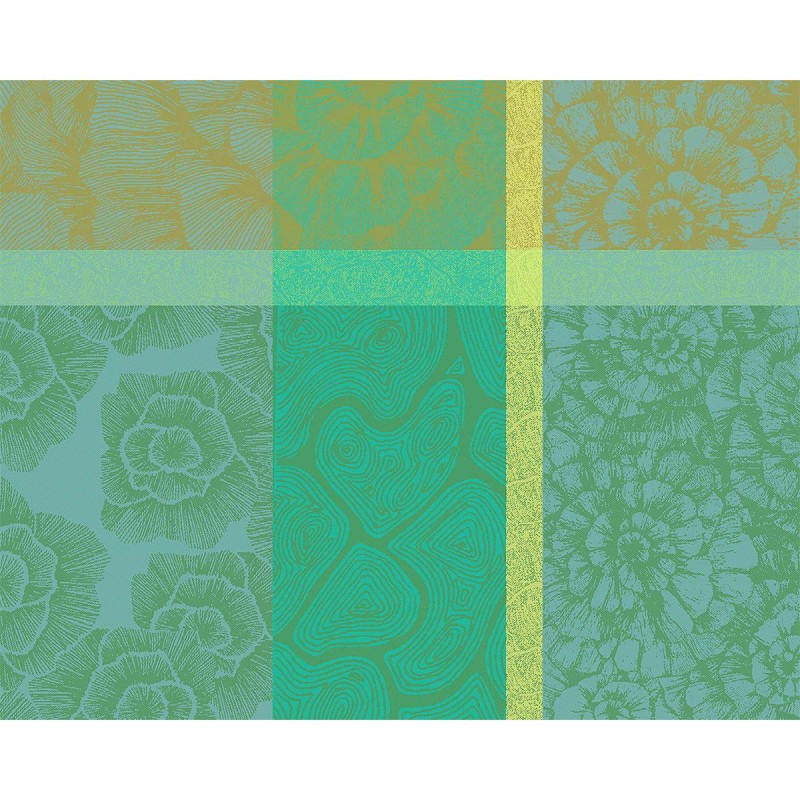 . Serviettes assorties serviettes de table Mille Pétales Chlorophylle ou serviettes unies Confettis coloris Absinthe, Mousse, Turquoise (coloris identiques, même fils) s'associent parfaitement à cette nappe et permettent de créer des coordonnés variés... En vente dans la rubrique serviettes de table.