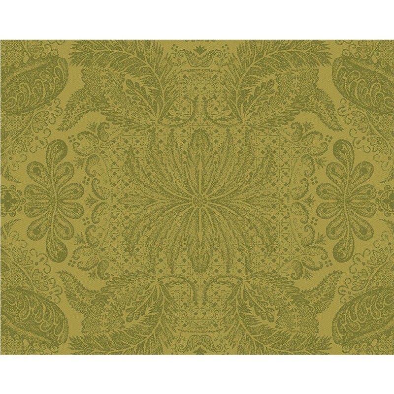 Un must pour une table de réception, de fêtes, de cérémonie, avec ces sets de table aux tons verts aux reflets or, et motifs sophistiqués, travaillés sur un damassé 100% coton 220g/m² de haute qualité. Vendus par 4. Fabriqué en France. Garnier-Thiébaut