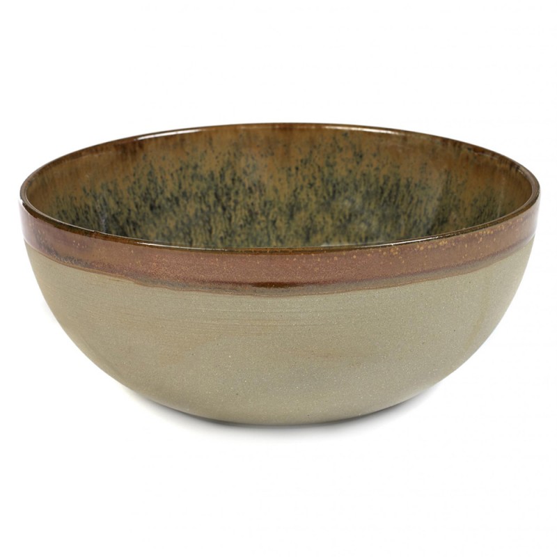 Le saladier en grès émaillé Surface de Sergio Herman, 3 étoiles au guide Michelin, au design original et moderne, est de forme idéale pour présenter salades ou desserts. La collection Surface aux coloris inspirés de la nature de Zélande, est l'oeuvre d'un travail minutieux, d'imperfections, de spécificités, et nous raconte une histoire. Surface de Sergio Herman pour Serax.