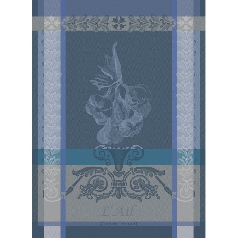 Torchons Ail Ardoise. Ces torchons de cuisine en coton de belle qualité jouent la carte du raffinement avec leurs motifs joliment encadrés. C'est un réel plaisir d'essuyer la vaisselle ! Torchons 100% coton damassé. Vendus par 4. Fabriqué en France. Marque Garnier-Thiébaut