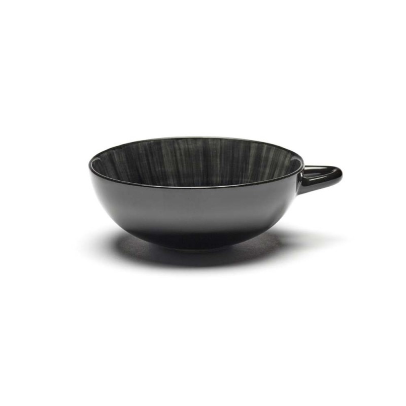 Le service Dé d'Ann Demeulemeester est une collection de motifs ombrés peints sur porcelaine, dans un jeu de clair-obscur. Ces tasses luxueuses modernes et originales rappellent la forme d'un bol et se distinguent par leur anse horizontale. Elles sont idéales pour déguster un thé, un chocolat. Elles sont proposées en plusieurs variantes. Coffret de 2 tasses.